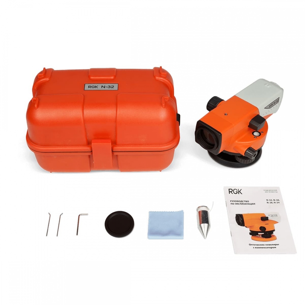Профессиональный оптический нивелир RGK N-32 обеспечивает высокую точность: средняя квадратическая ошибка на километр двойного хода составляет всего 1 мм, что позволяет отнести N-32 к классу точных нивелиров. Оптика прибора обеспечивает чёткое прямое изображение с 32-кратным увеличением с комфортом для оператора. Благодаря своим характеристикам, прибор универсален и может эффективно использоваться при проектировании, строительстве зданий и прокладке дорог, а надёжный корпус нивелира защитит его от попадания пыли, влаги и случайных ударов.