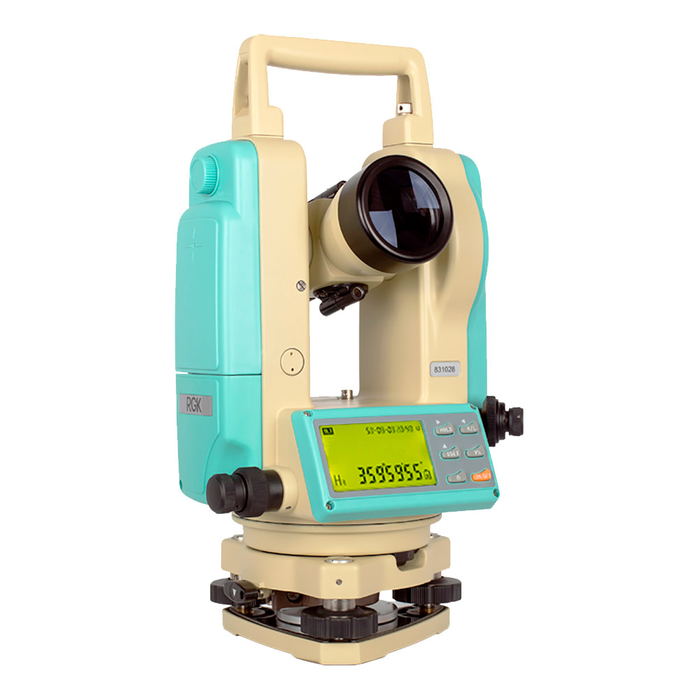 Теодолит RGK T-20 надёжен, удобен в обращении и, в отличие от оптических теодолитов, не требует специальной подготовки при работе с ним.